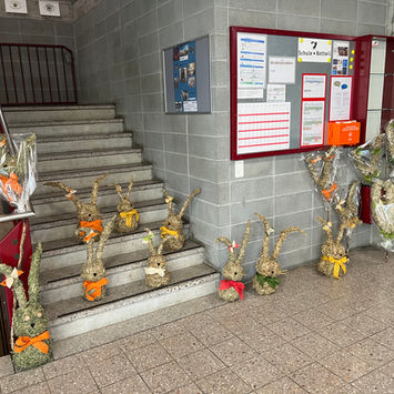 Im Vorfeld hatte die Kirchenpflege mit viel Kreativität und Liebe zum Detail schöne Osterhasen aus Heu gebastelt. Diese wurden beim Suppen-Zmittag zum Verkauf angeboten. Es konnten sehr viele Hasen für den guten Zweck verkauft werden.
