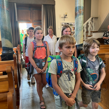 Mit leuchtenden Augen und voller Vorfreude nahmen die Kinder den Segen für das neue Schuljahr entgegen. Ein Höhepunkt der Feier war ein von den Kindern gestaltetes Rollenspiel, welches den Beginn des neuen Schulweges darstellte. Mit viel Freude, Humor und Kreativität stellten sie dar, wie ein neuer Schulweg beginnt. Manchmal voller Neugier, manchmal mit kleinen Stolpersteinen, aber immer mit Zuversicht. Es vermittelte nicht nur Freude und Gemeinschaft, sondern auch das Vertrauen, dass Gott die Kinder auf allen Wegen begleitet.